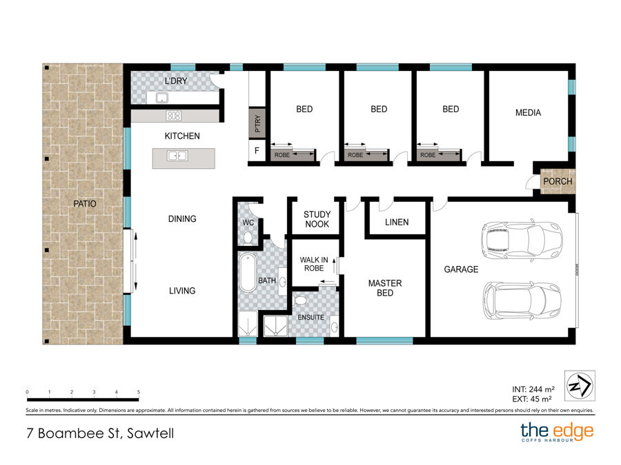 A second living or media room sits at the front of the home, providing flexibility for families, while a study nook adds everyday practicality. All four bedrooms are spacious and fitted with built-in robes, while the bathrooms impress with floor-to-ceiling tiles and designer finishes. Ducted air conditioning ensures year-round comfort, and side access makes it easy to store a trailer or small boat.