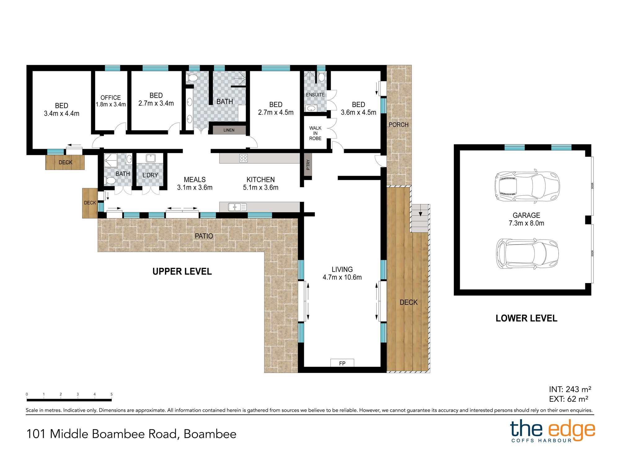 The master suite provides a sophisticated retreat, complete with walk-in wardrobe, elegant ensuite, air-conditioning and direct access to the north-facing deck. A thoughtfully designed separate wing accommodates the additional three bedrooms, main bathroom and a dedicated office, offering excellent separation, flexibility and practicality for modern living.